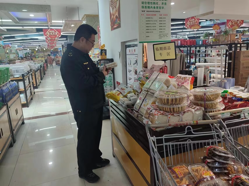 城市社區(qū)市場監(jiān)管所開展臨期食品專項檢查 圖片來源:席漢海 攝
