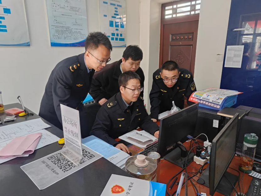 靈臺縣獨店市場監(jiān)管所執(zhí)法人員齊心協(xié)力辦業(yè)務(wù) 圖片來源:周志龍 攝