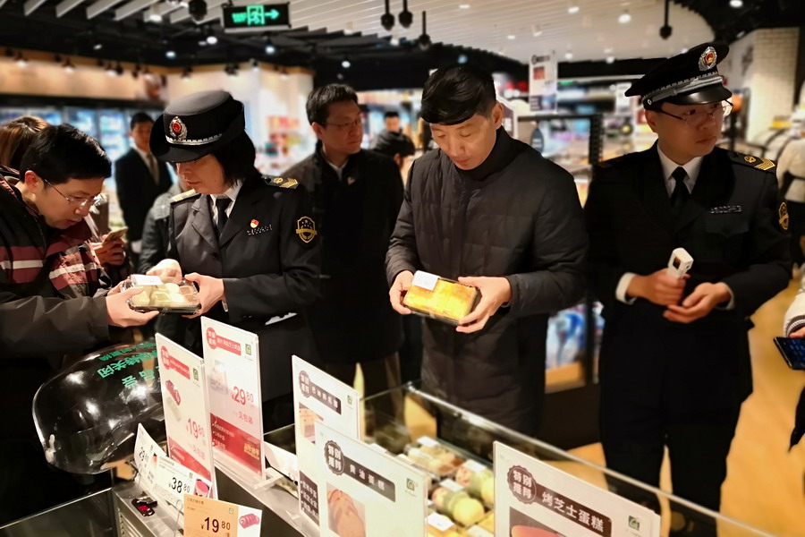 1月1日,市市場監(jiān)管局局長陳學軍到黃浦區(qū)檢查節(jié)日市場食品安全監(jiān)管工作。這是市市場監(jiān)管局首次合并檢查市場。市市場監(jiān)管局副局長許瑾一同檢查市場。