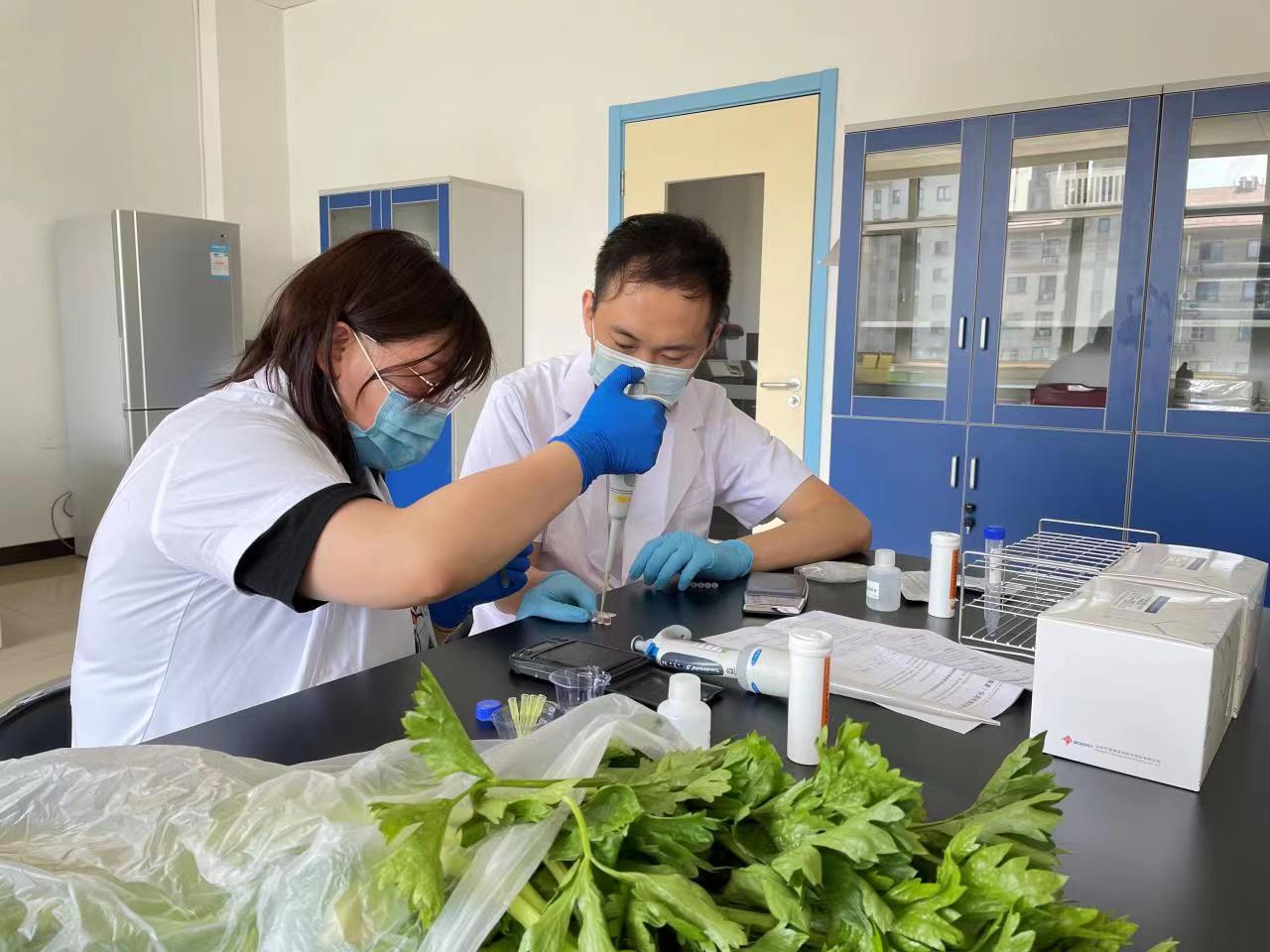 同時,為響應(yīng)農(nóng)業(yè)農(nóng)村部《食用農(nóng)產(chǎn)品“治違禁控藥殘 促提升”三年行動方案》中重點品種的典型和突出問題,北京市農(nóng)產(chǎn)品質(zhì)量安全中心開發(fā)了適用于高風(fēng)險蔬菜高頻檢出農(nóng)殘同步速測技術(shù)及產(chǎn)品。并對樣品前處理、稀釋液倍數(shù)、T/C判讀限、耦合方式等技術(shù)參數(shù)的進(jìn)一步優(yōu)化,開發(fā)了韭菜中克百威、毒死蜱、腐霉利、啶蟲脒和芹菜中克百威、毒死蜱、氟蟲腈、阿維菌素等多種農(nóng)藥殘留同步快速檢測試紙條,形成快速檢測產(chǎn)品操作技術(shù)規(guī)范,實現(xiàn)蔬菜多殘留同步快速檢測的效果。