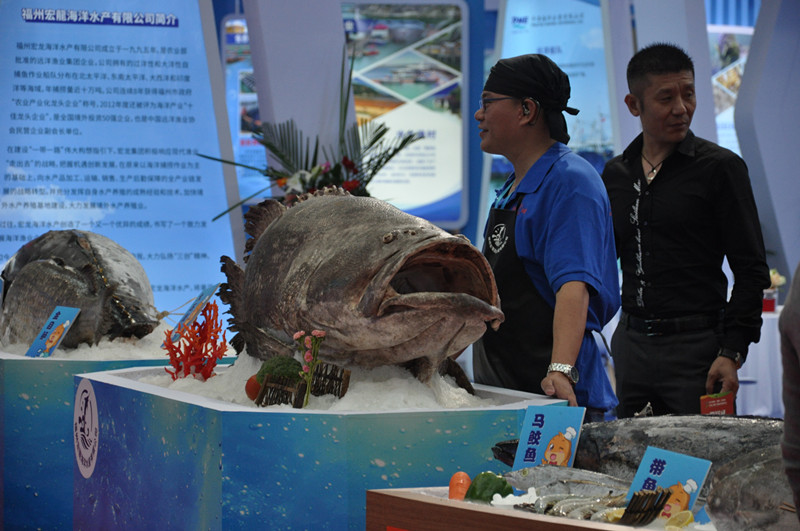 7號(hào)館設(shè)置水產(chǎn)加工展區(qū)、遠(yuǎn)洋漁業(yè)純天然產(chǎn)品展區(qū)、漁業(yè)機(jī)械展區(qū)三大展區(qū),展館面積11000平方米,標(biāo)準(zhǔn)展位達(dá)510個(gè),共計(jì)120家參展企業(yè),一條重達(dá)330斤的巨型石斑魚(yú)吸引了眾多觀眾駐足,同時(shí),還有一條重達(dá)500斤的金槍魚(yú)現(xiàn)場(chǎng)進(jìn)行解刨。