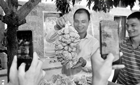 兩年前,許生自己試種了300畝榴蓮味菠蘿蜜樹。另外,近兩年來,他動員豐南村的村民廣種此新品種,旨在帶動村民走上致富之路。由此,他向村民們免費提供了一批價值100多萬元的樹苗,目前該村幾乎家家戶戶都在種植,規(guī)模達到800多畝。