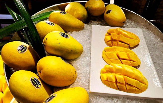 主辦方提供的資料顯示,芒果在印度種植的歷史已超過5000年,印度國內(nèi)有超過200種不同的芒果,全世界41%的芒果在印度種植。廣州中心皇冠假日酒店廚師高峻介紹說,來自印度的阿方索芒果相比中國的芒果,印度的芒果比較清香,切起來感覺比較軟,吃到最后會有一點澀味。