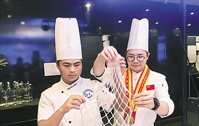 其中,“氣球上切菜”令觀看者驚嘆不已:廚師蒙住雙眼,在氣球上將土豆片切成可穿過針孔的細絲。英國前國際發(fā)展部國務(wù)大臣麥克·貝茨勛爵一邊贊嘆,一邊掏出手機錄下全過程。