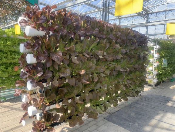 大棚內(nèi)分中央走廊、葉菜區(qū)、蔬果區(qū)三大部分。在里面,記者看到了琳瑯滿目的蔬菜品種,現(xiàn)代化種植方式讓人大開眼界,根據(jù)不同蔬菜的特性,采用“墻體”“陽臺菜園”“滾筒”等栽培模式,全部實(shí)現(xiàn)無土栽培,蔬菜在營養(yǎng)液中培育生長。
