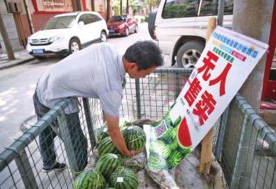 無人售賣西瓜,買賣全靠自覺