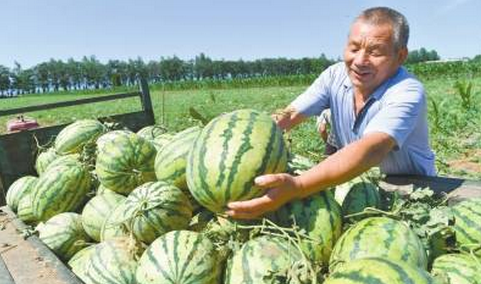 ????7月1日,洛陽(yáng)市洛寧縣小界鄉(xiāng)徐村農(nóng)民范安忠在采摘旱地西瓜。洛寧縣地處豫西山區(qū),干旱少雨。近年來(lái),該縣因地制宜發(fā)展旱地西瓜,西瓜種植面積達(dá)1萬(wàn)余畝。旱地西瓜含糖量高,賣價(jià)高,為農(nóng)民增收拓展了新途徑。(楊遠(yuǎn)高?李峰)