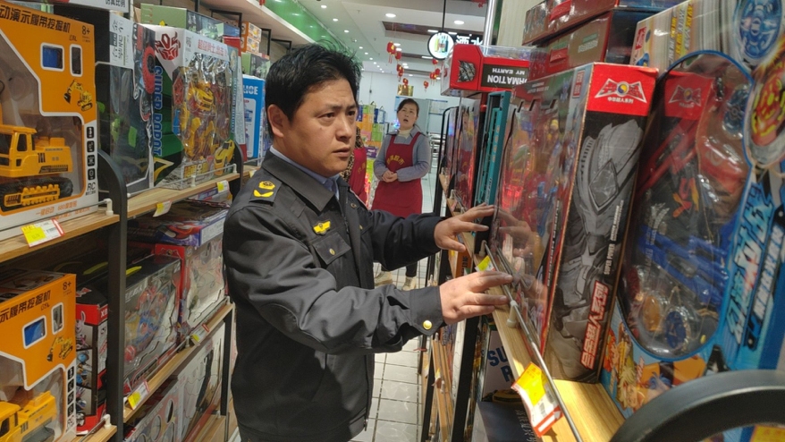在校園周邊文具店、玩具店等經(jīng)營(yíng)場(chǎng)所,執(zhí)法人員以文具、各類游戲盲盒、“蘿卜刀”、“3C”認(rèn)證玩具為重點(diǎn)檢查產(chǎn)品,檢查是否符合質(zhì)量安全標(biāo)準(zhǔn),是否取得3C認(rèn)證,是否有廠名廠址、警示說明、年齡限制,是否有中文說明、產(chǎn)品質(zhì)量合格證、產(chǎn)品執(zhí)行標(biāo)準(zhǔn)等信息。玩具外包裝是否印有“虐待”“情趣”等低俗文字和圖片,是否涉及不當(dāng)誘導(dǎo)。
