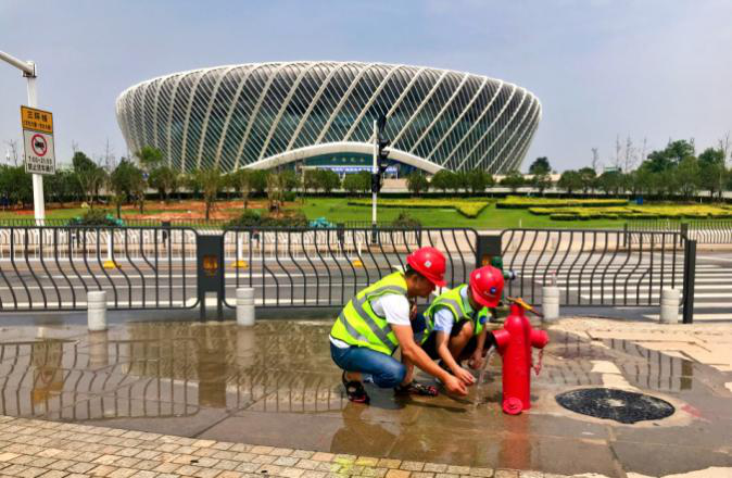 武漢市水務集團東湖高新供水公司是由58人構成的集體,承擔了區(qū)域內(nèi)奧體中心、網(wǎng)球中心、驛山高爾夫等6個比賽場館,光谷希爾頓、紐賓凱等6家保障酒店,以及10條保障線路,全員投入一線“戰(zhàn)場”進行供水保障工作。