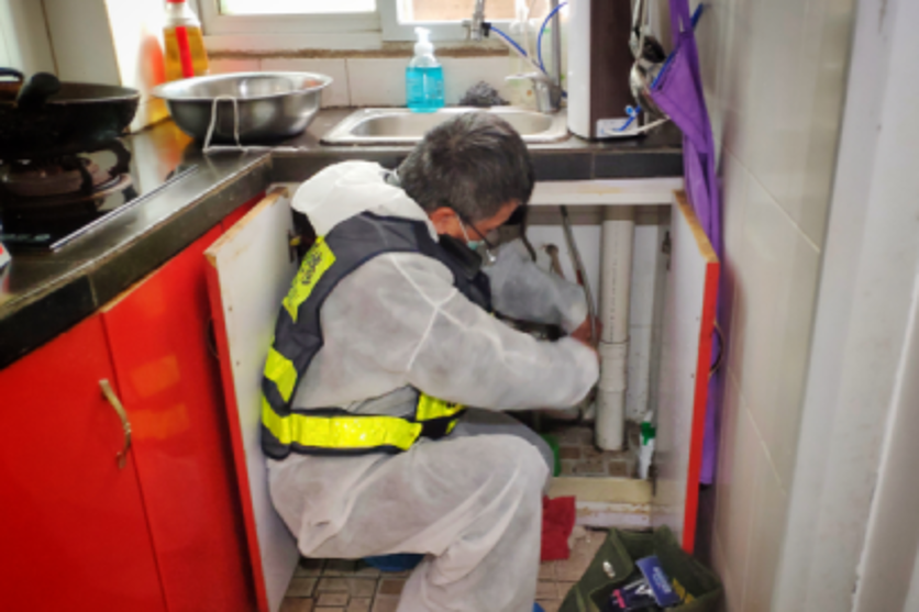 維修人員正在用戶家中進行水管維修