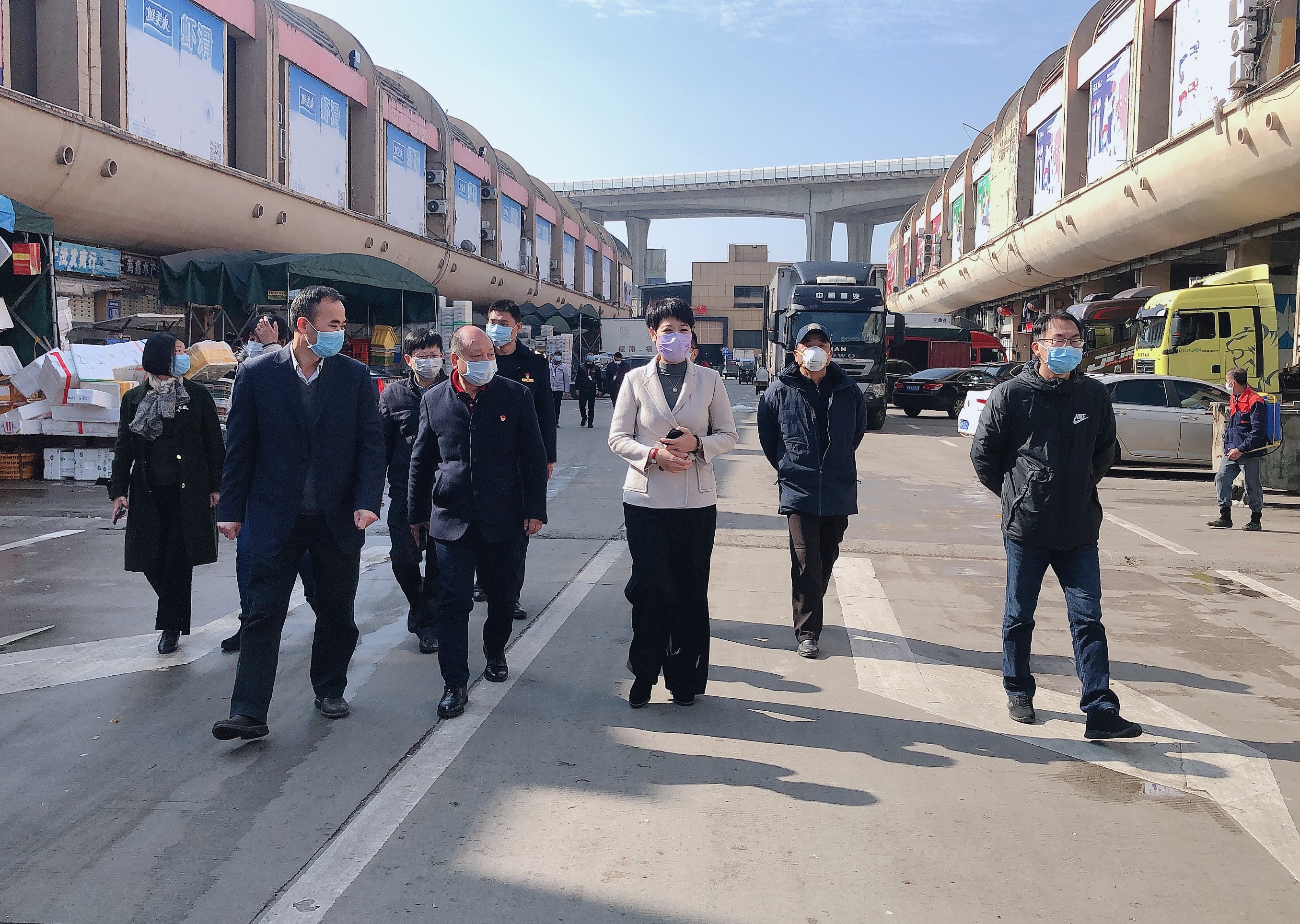 ????領(lǐng)導(dǎo)干部堅(jiān)守防控一線。1月31日上午,該局黨組書記、局長林毅陪同副主任、副區(qū)長林群慧到海峽水產(chǎn)品交易中心、中環(huán)永輝超市、光瀾酒店等處檢查防控工作落實(shí)情況,對有關(guān)企業(yè)防控工作一一做出指導(dǎo)。