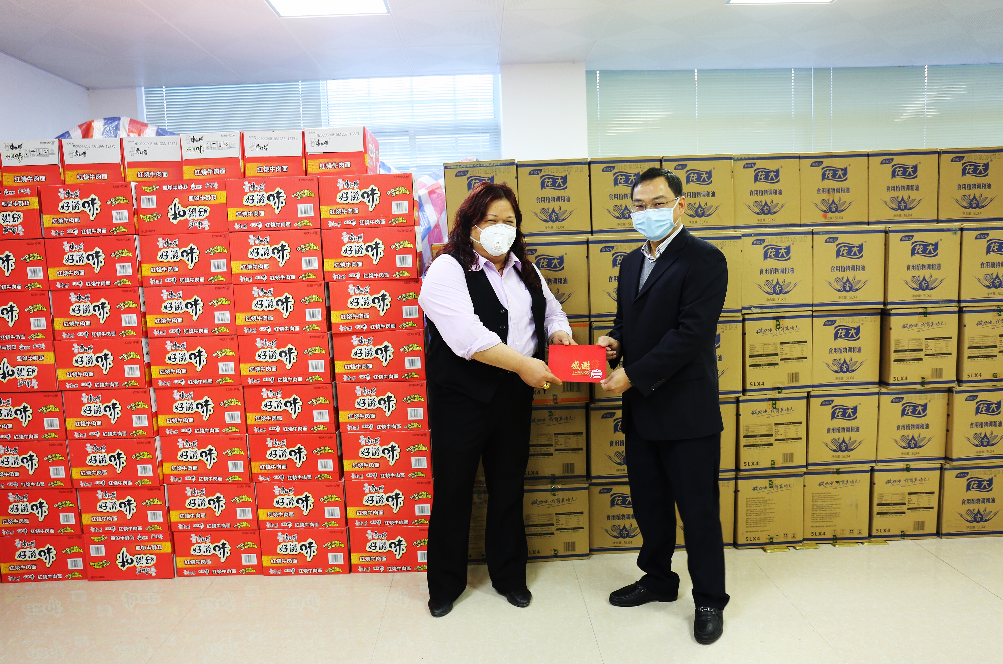 協(xié)會(huì)代表為市場監(jiān)管所送去口罩等防控物資