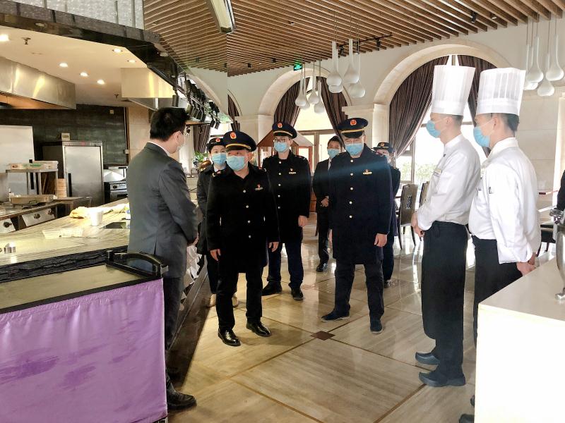 圖為區(qū)局局長(zhǎng)林毅現(xiàn)場(chǎng)指導(dǎo)企業(yè)食堂復(fù)工防疫工作