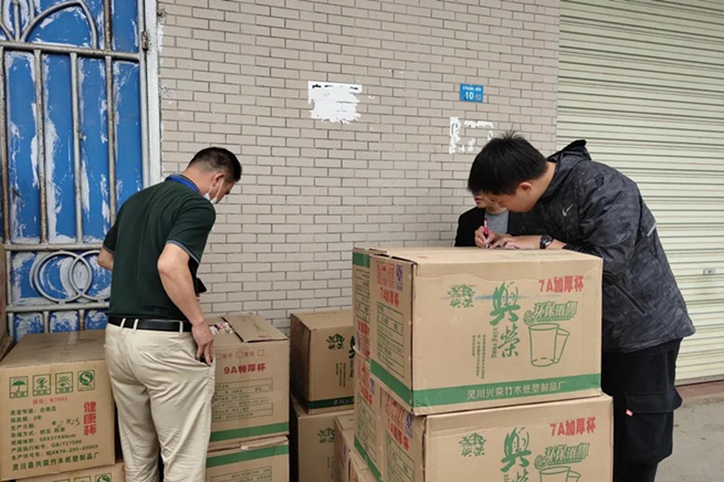在現(xiàn)場(chǎng),石塔村石塔西路一橫巷的倉(cāng)庫(kù)儲(chǔ)存著不同規(guī)格的“加厚紙杯”“珍珠奶茶飲管”“水晶餐具”“高透防霧紙碗蓋”等等,均為海南禁止銷售使用的不可降解塑料制品。其中,有一批品名為“PP—120蓋”物品,其生產(chǎn)日期為2021年3月4日。執(zhí)法人員在調(diào)取了進(jìn)貨憑證、銷售憑證及相關(guān)證據(jù)后,對(duì)涉案物品進(jìn)行現(xiàn)場(chǎng)查扣。目前案件正進(jìn)一步調(diào)查中。
