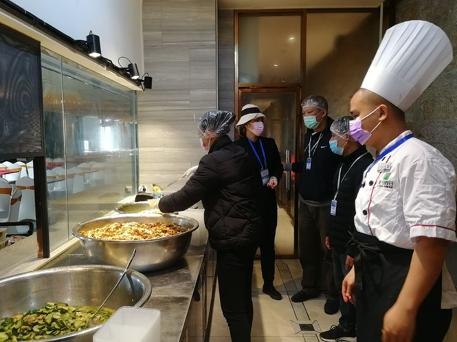 工作人員對(duì)酒店及供餐單位進(jìn)行檢查
