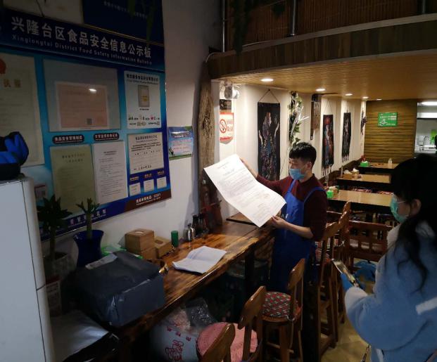 落實督導(dǎo)責任,發(fā)現(xiàn)、解決問題。在督查中,發(fā)現(xiàn)餐飲業(yè)戶入店體溫測量不規(guī)范、未佩帶口罩等現(xiàn)象,檢查人員及時告誡,現(xiàn)場糾正;發(fā)現(xiàn)熟食等食品散裝無封閉銷售,個別存在生熟未分離的情況,檢查人員現(xiàn)場告知、指導(dǎo),要求添加防護設(shè)施,做到生熟分離;部分藥房未對入戶顧客及時進行體溫測量,測溫記錄不全,員工日常測溫記錄不全,檢查人員予以糾正,督促整改。從2月25日至28日,第二督導(dǎo)組共現(xiàn)場解決問題38件。對現(xiàn)場未能解決的“健康證到期補辦”、“藥品與醫(yī)療器械混放”等問題已及時反饋給轄區(qū)市場監(jiān)管局予以跟蹤監(jiān)管。