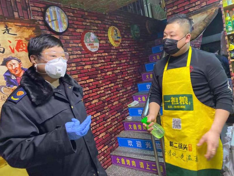 一是停止大型超市經(jīng)營(yíng)活動(dòng),對(duì)轄區(qū)1家大型超市進(jìn)行公告關(guān)停,并引導(dǎo)其線上經(jīng)營(yíng),通過(guò)配送貨,服務(wù)轄區(qū)百姓。二是停止機(jī)關(guān)企事業(yè)單位食堂集體就餐,可選擇分餐配送方式或簡(jiǎn)餐,進(jìn)出食堂人員必須戴口罩,錯(cuò)時(shí)就餐,避免面對(duì)面就餐;要建立統(tǒng)一餐廚垃圾投放點(diǎn)、餐具洗消點(diǎn),疫情期間每天不少于2次集中消毒,嚴(yán)格執(zhí)行食品安全操作規(guī)范要求。三是停止餐飲業(yè)戶經(jīng)營(yíng),對(duì)轄區(qū)早餐店、飯店、燒烤店等餐飲業(yè)戶加強(qiáng)日常巡查公告,嚴(yán)禁疫情期間對(duì)外經(jīng)營(yíng),線上銷售要嚴(yán)格食品安全操作規(guī)范,特別加強(qiáng)了對(duì)夜間燒烤店經(jīng)營(yíng)行為的排查整治。